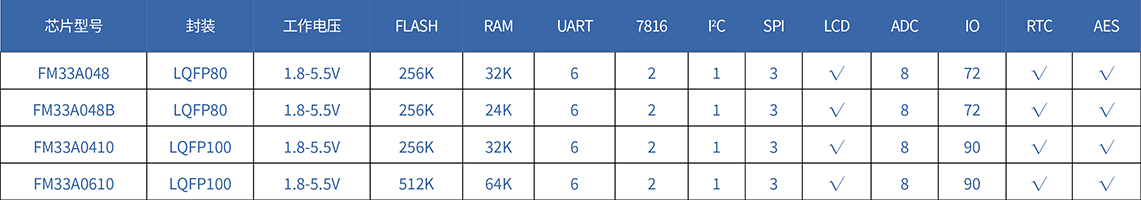 上海復(fù)旦微電子集團(tuán)股份有限公司智能電表MCU包括32位Cortex-M0內(nèi)核FM33A0xx/FM33A0xxB系列芯片及16位增強(qiáng)型8xC251內(nèi)核FM33xx系列芯片。最大支持512KB FLASH程序存儲(chǔ)器和 64KB RAM,并集成LCD驅(qū)動(dòng)、帶溫補(bǔ)的RTC、ADC、AES以及UART、I2C、SPI、7816等通用外設(shè)接口。